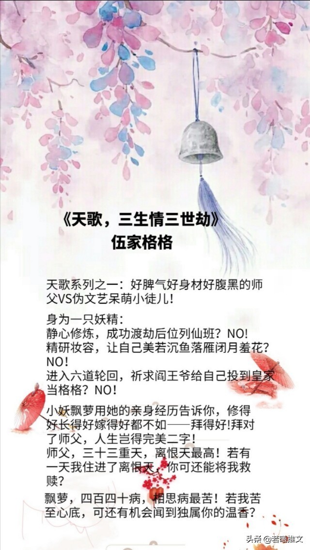 推荐理由:好脾气好身材好腹黑的师父VS伪文艺呆萌小徒儿!幸福感满满,真的感觉身临其境一般,星华和飘萝真的很不容易,因为爱,他们度过了漫长的岁月,作者写的很好,文笔细腻,真的很感人,推荐大家看
