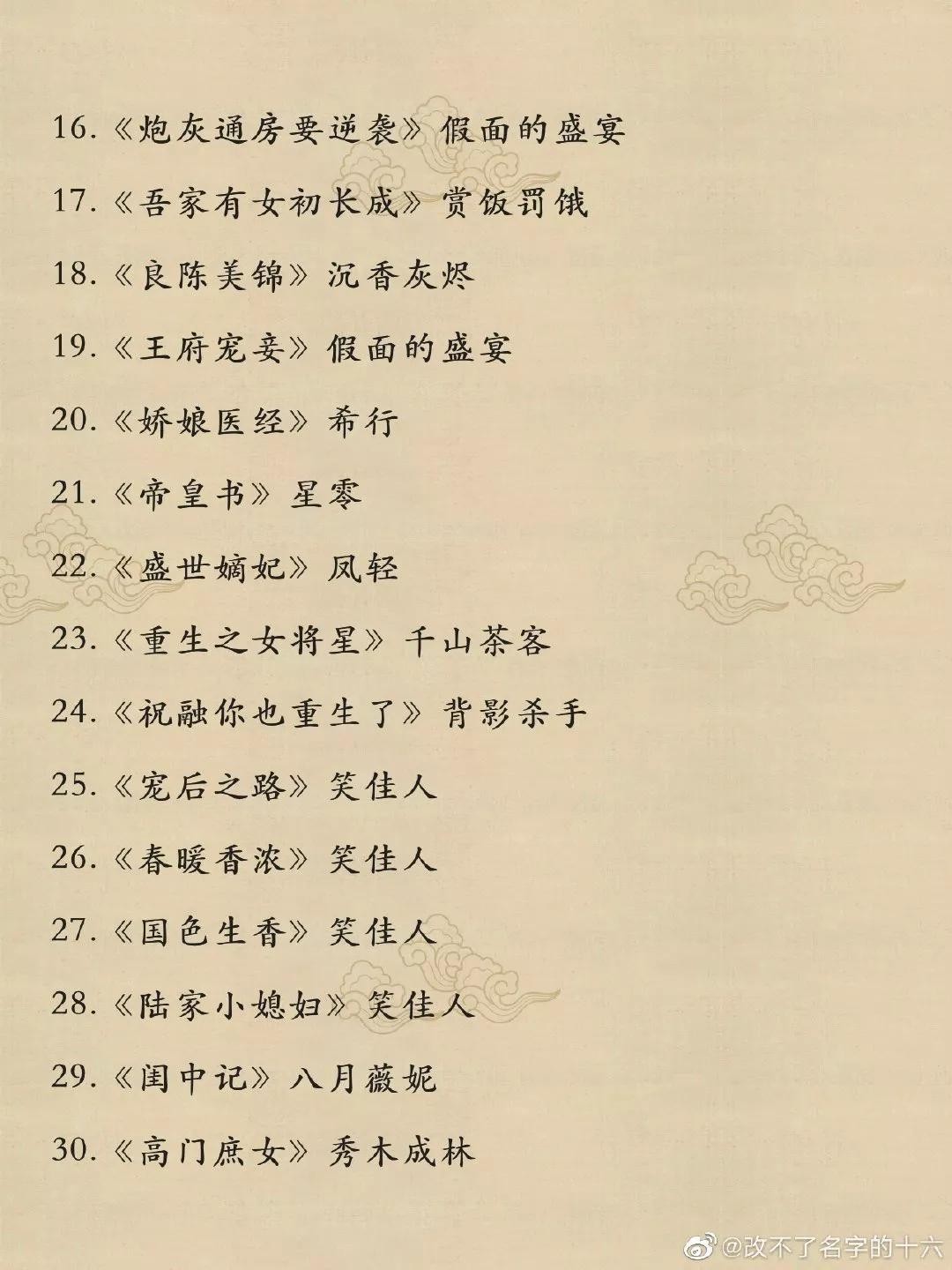 为小伙伴们带来158本高质量的好看,古言重生小说。