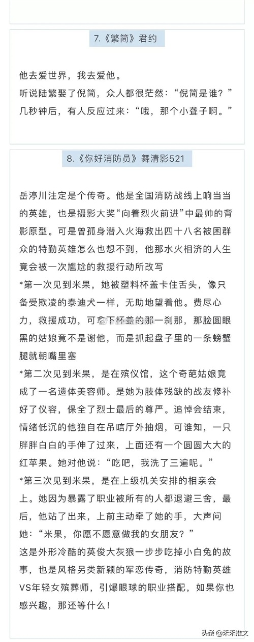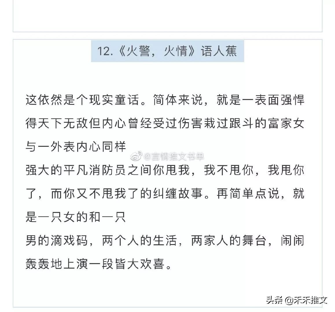 今天的这篇推文为小伙伴们推荐15本男主是消防员的言情小说。