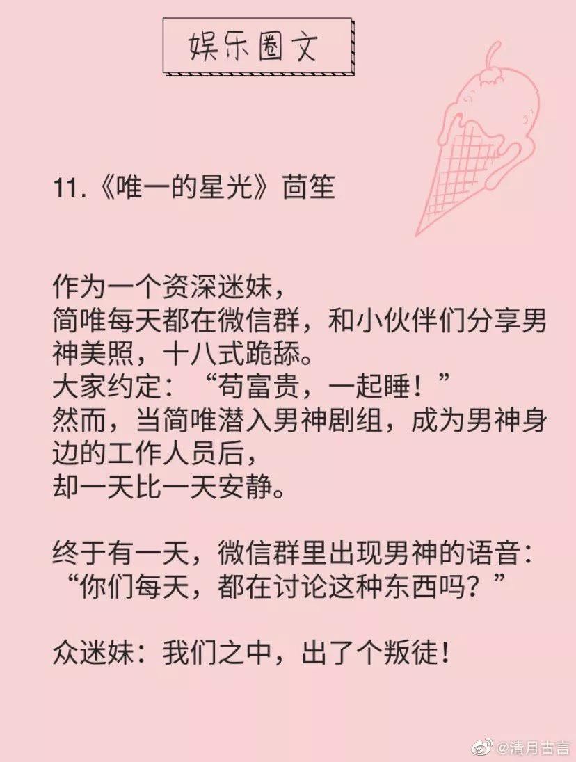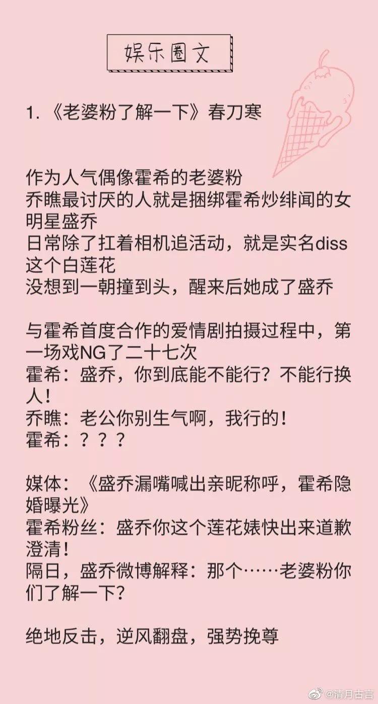 今天的这篇推文为小伙伴们分享11本超级好看,高质量经典的娱乐圈甜宠文。