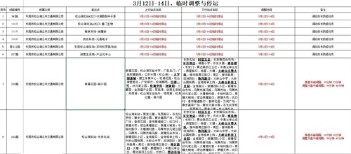 3月12日-14日 临时停运:343路、346路、373路、380路、莞312路、337路。调整发车间隔:338路、302路。