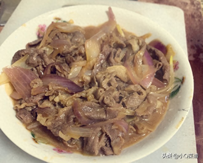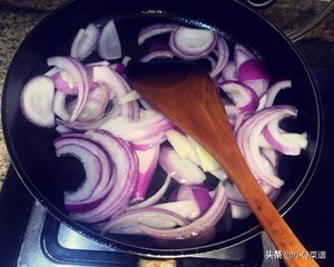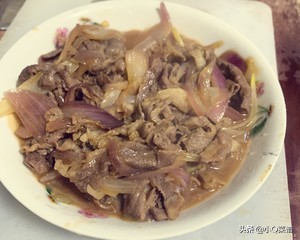 小贴士:切洋葱要小心眼睛哦!洋葱要事先煸熟,牛肉要撇血沫去腥,加入调味汁,快速收汁,盛出,牛肉不能久煮,会变老。
