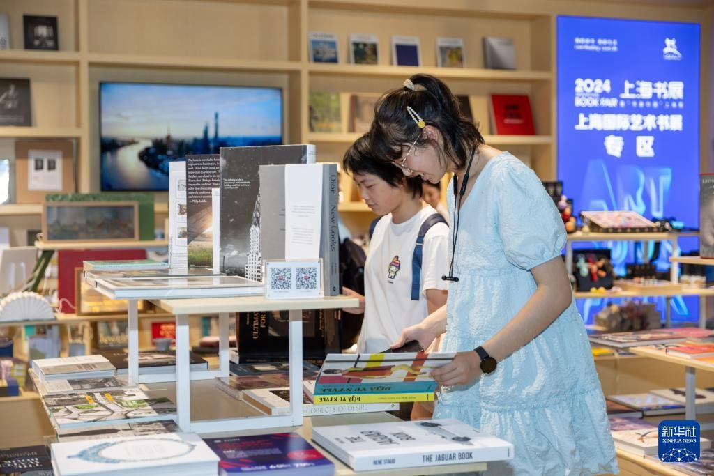 8月14日,人们在上海国际艺术书展专区翻阅书籍。