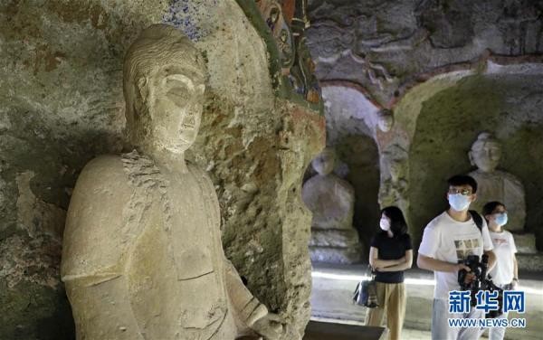 6月12日,游客在万佛堂石窟景区参观游览。 当日,游客来到辽宁省锦州市义县万佛堂石窟景区,参观距今1500多年的石窟造像,感受丰富的历史文化魅力。 新华社记者 姚剑锋 摄