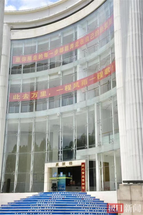 在武汉音乐学院,标语被巧妙地藏在了台阶中:“跃入人海,各有风雨灿烂”“来时同舟共渡,去时亦如夏花”“愿此去繁花似锦,再相逢依旧如故”……