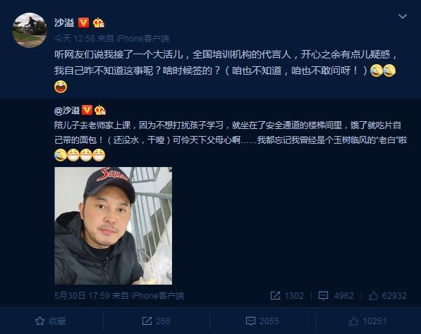 而这件事没过多久就登顶了微博的热搜榜,引起了沙溢本人的关注。而沙溢自己也对这件事情感到是非常差异,表示是朋友告诉自己竟然成为了全国培训机构的代言人,真是一头雾水。自己也什么都不知道,什么都不敢问。