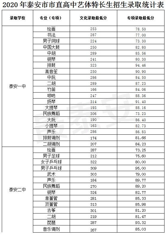 8 月 17 日,泰安市教育局公布2020 年普通高中统招生、艺体特长生录取结果,普通高中统招生、艺体特长生录取分数线同时公布