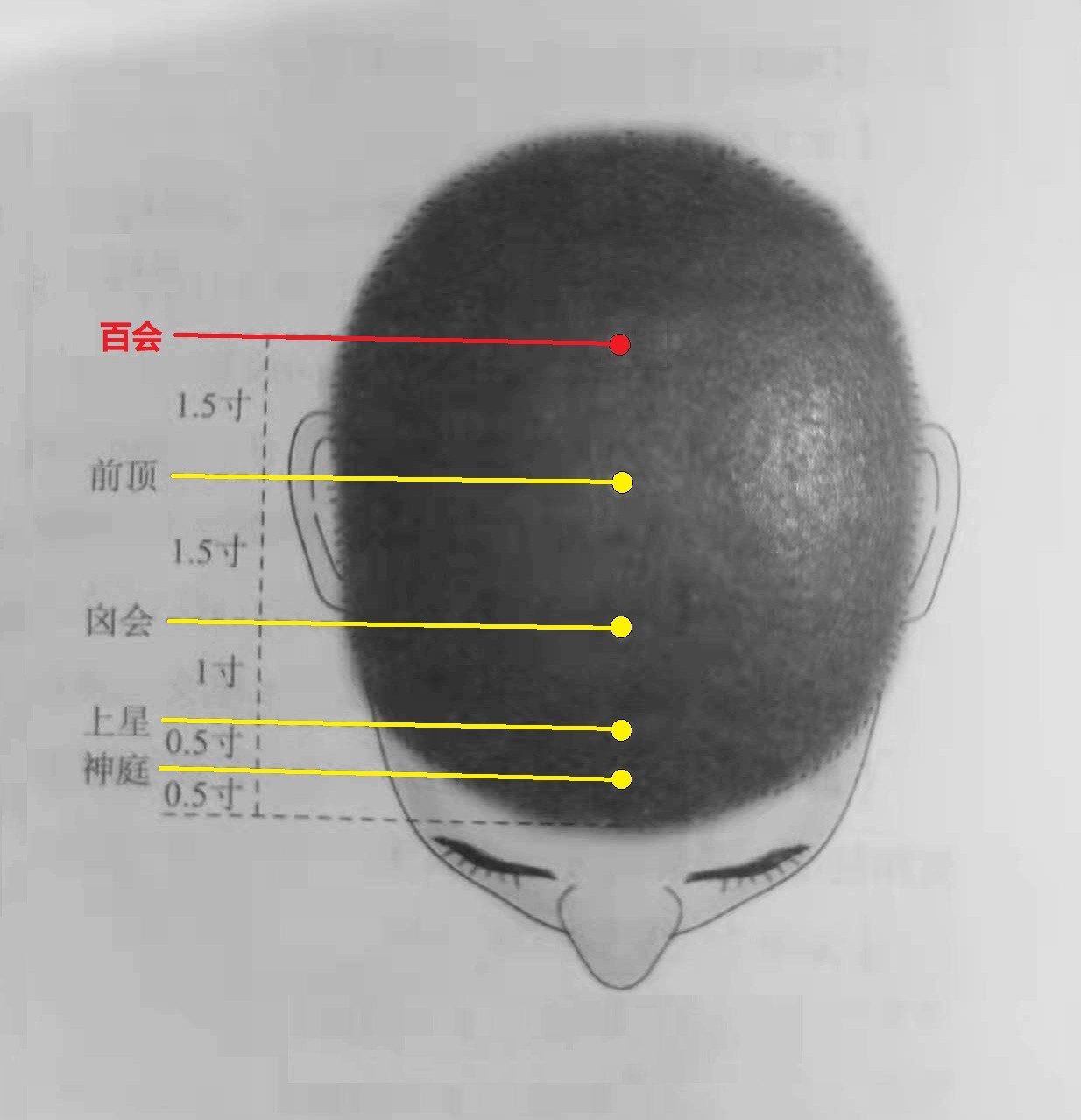 穴位位置:前发际正中线直上5寸。