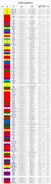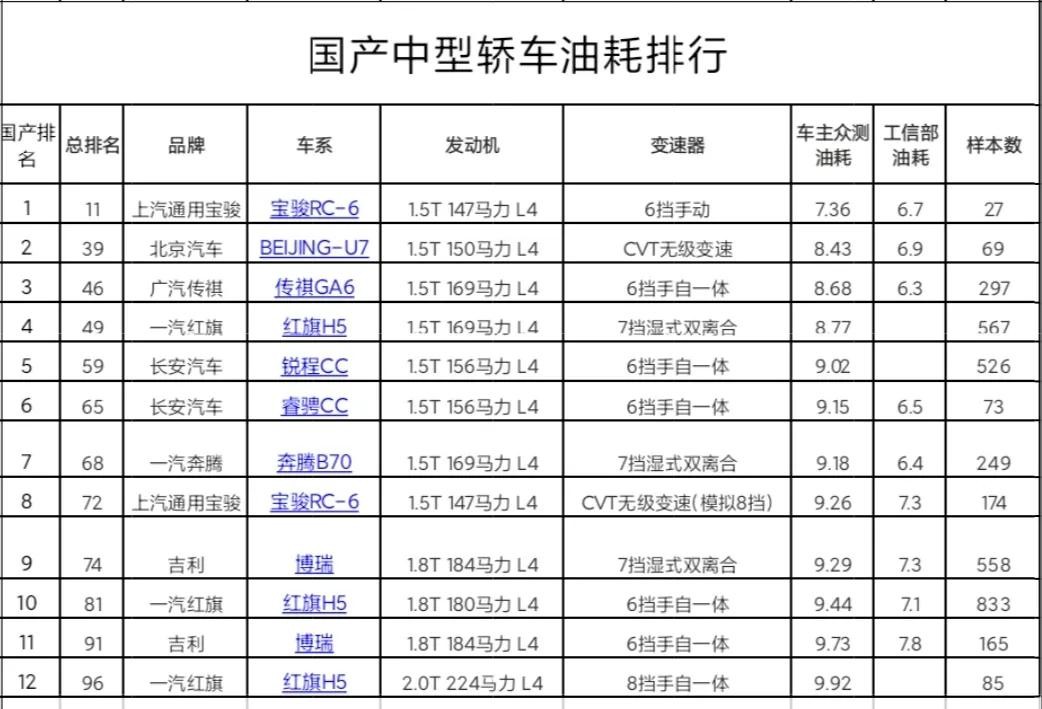 中型轿车油耗排行榜,有些数据可能要刷新你的认知!
