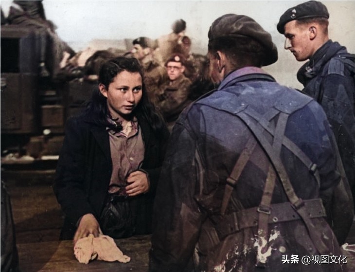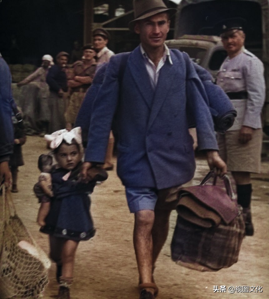 难民姑娘,1945年,战争已经结束了,犹太人开始了大迁徙,图为一名刚刚到达海法的犹太难民姑娘,正在接受英国士兵的盘问。