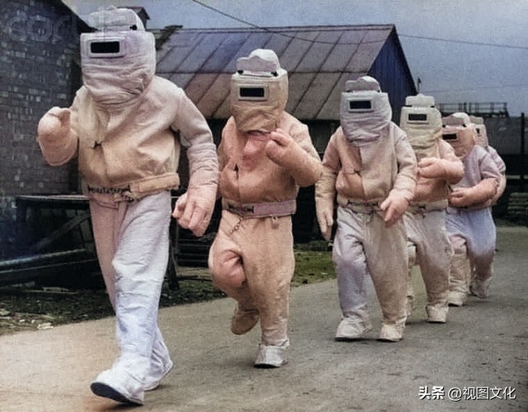 1940年,一支英国舰队空军救援队,当时厚重的防护服是石棉材质的。