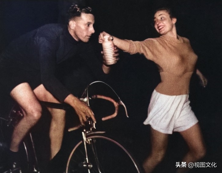 来罐甜牛奶吧,1945年11月,英国,一场自行车赛中,一名年轻姑娘递给一位选手一罐甜牛奶,并一脸崇拜的样子,最终该选手成功打破了这段距离自行车赛的最高纪录。