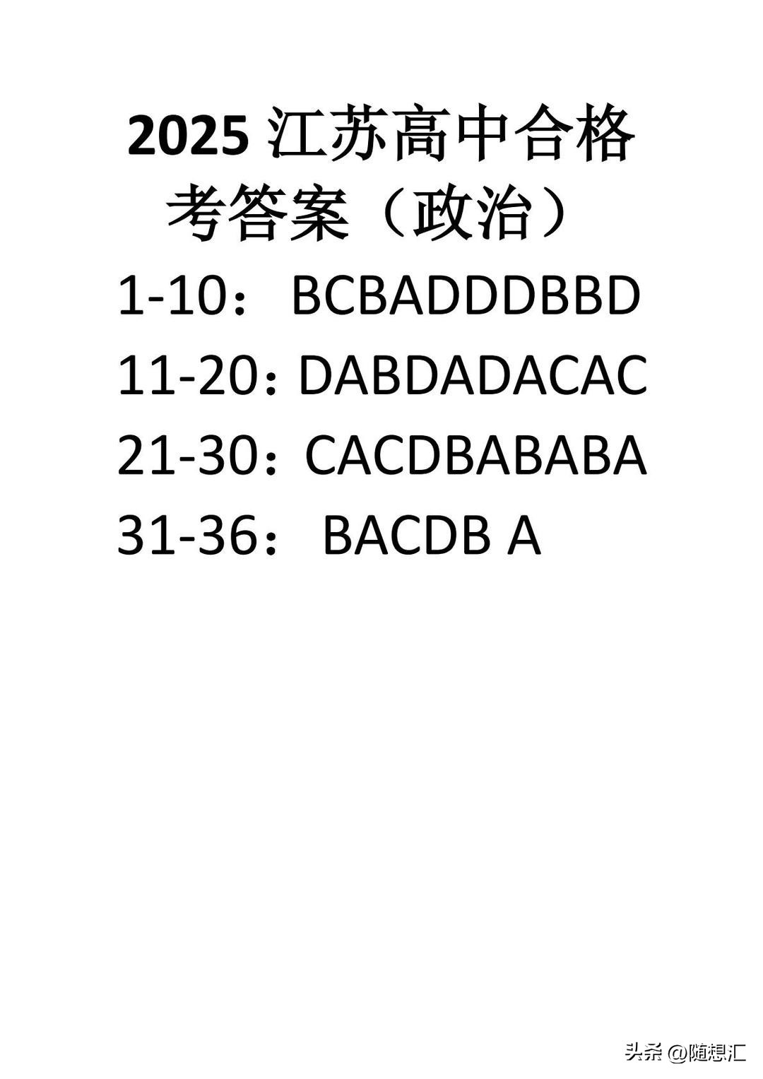 2025江苏小高考(高中合格考)成绩何时公布?附各科考试答案