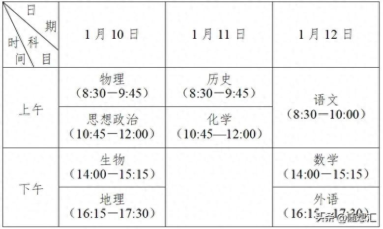 2025江苏小高考将于1月10日至12日举行,第一天将考察物理、政治、生物、地理4门选考科目,历史、化学科目将在11日上午进行考试,而剩下的三门主科(语文、数学、英语)则在1月12日举行测试。以下为具体考试安排,供查阅。