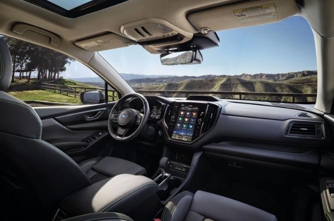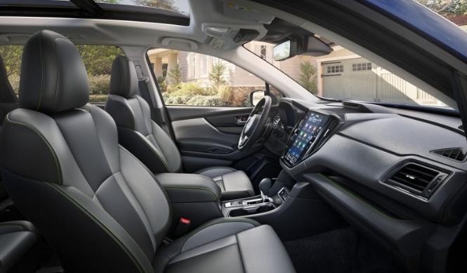 内饰配置方面,全新改款斯巴鲁Ascent采用了标准的3排座,拥有7人座和8人座两种座椅配置,并且全系搭载一块11.6英寸的直立式多媒体触控大屏,同时内置斯巴鲁最新的车机系统,拥有调节空调、X-MODE等车辆设置功能,并且支持Apple CarPlay和无线Android Auto等功能配置;值得一提的是,新车还新增了Onyx Edition特别版运动套件,配备黑色钢琴镀铬饰板以及StarTex 防水材质座椅搭配绿色车身缝线,进一步提升了车内的运动氛围。