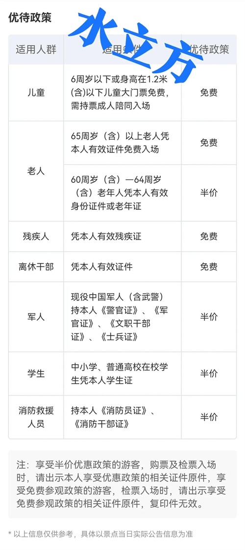 水立方门票免票政策,有4类人员免费,具体包括儿童,老人,残疾人,离休干部等4类人员。