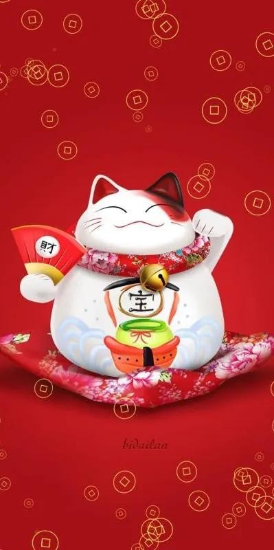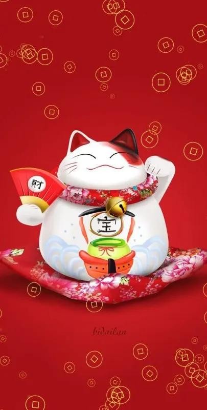 招财猫壁纸:希望大家都能在新的一年里发大财