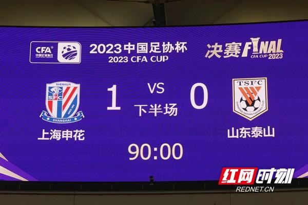 红网时刻新闻11月25日讯(记者 符洹雨)11月25日下午,2023年中国足协杯决赛在苏州举行。上海申花凭借于汉超的进球,1比0击败山东泰山,夺得队史第四次足协杯冠军,并获得下赛季亚冠精英赛参赛资格。本文摄影/张玮