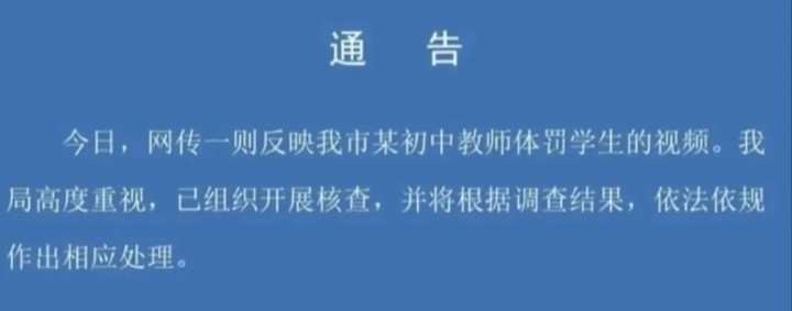 近日,一位初中老师在课堂上用戒尺抽打学生手心的视频在网上疯传,引发了人们的广泛关注和热议,当地教育主管部门也是第一时间对此作出了快速反应并发布了通告(如上图所示):我局高度重视,已组织开展核查,并将根据调查结果依法依规作出相应处理。毫无疑问,网友们都在等待后续结果。