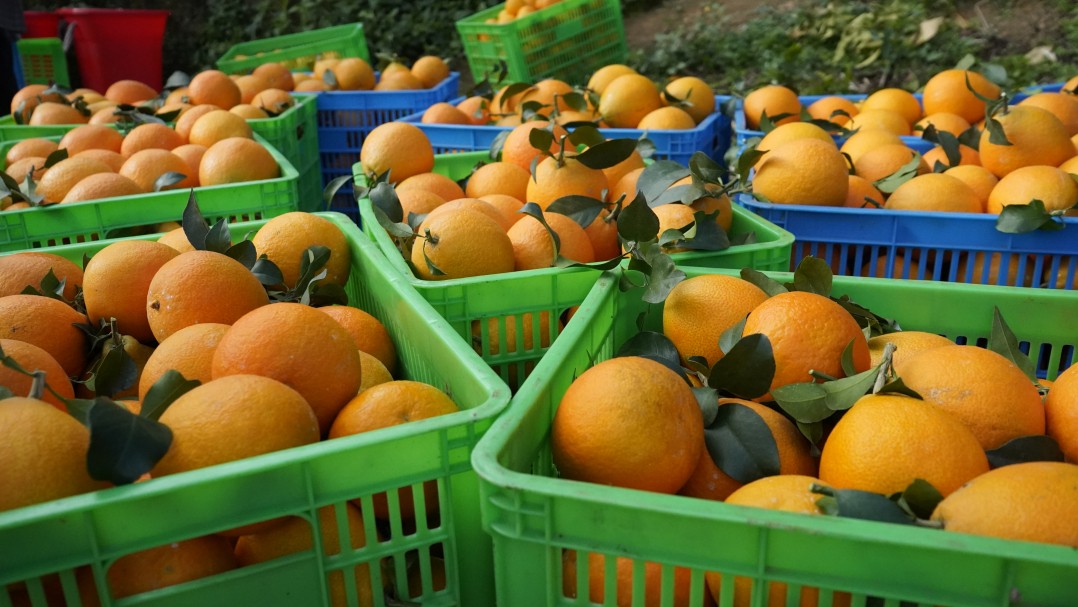 “采摘是从十月下旬开始采的,到现在差不多销售了3万多斤了,我们的果冻橙的销售是通过线上平台、基地采摘、店铺售卖,以及配送学校的营养午餐。”清家果园果场场长喻仕贤说,“今年的产量大概是在5万多斤,根据目前的市场价格,产值在30万元左右。”