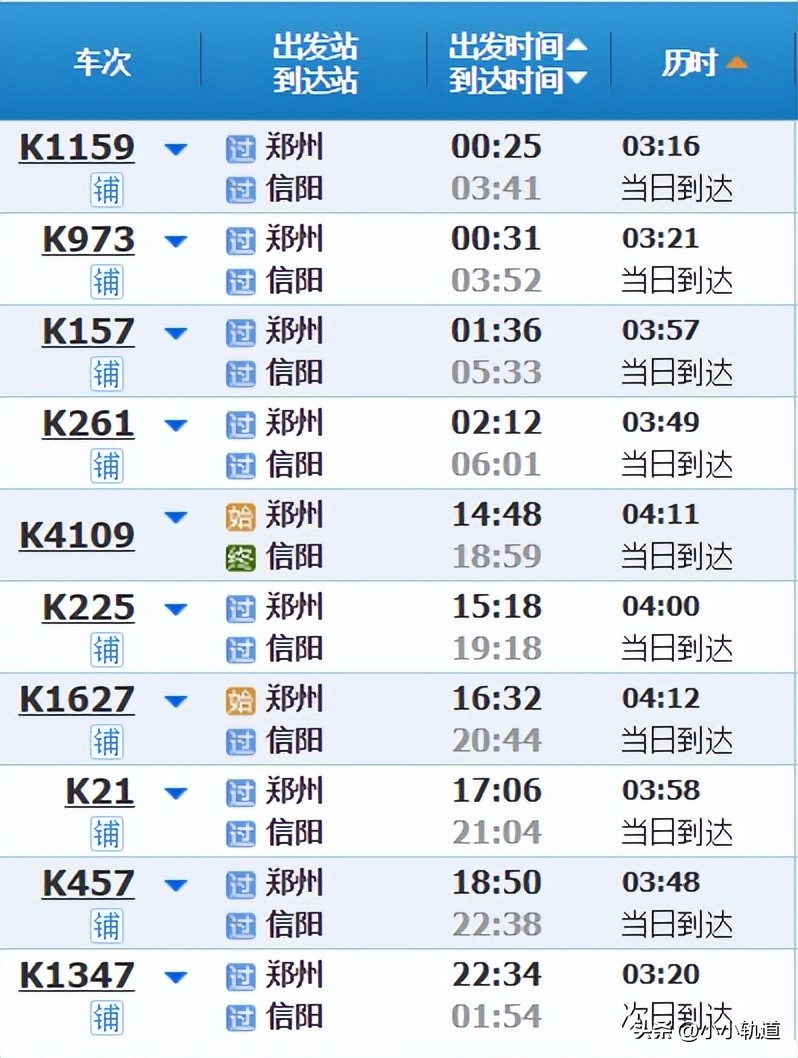 目前,郑州至信阳每天有10个车次的快速列车,其中,只有1个车次为始发终到站列车——K4109次列车。