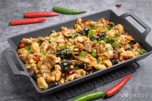 (5)将牛蛙下锅翻炒,加酱汁翻炒后加熟芝麻即可。