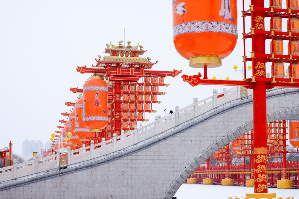 12月14日,河北唐山市民在丰南区河头老街拍摄雪景。新华社发(李秀清摄)