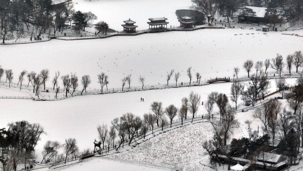 12月14日拍摄的河北承德避暑山庄雪景(无人机照片)。新华社发(王立群摄)