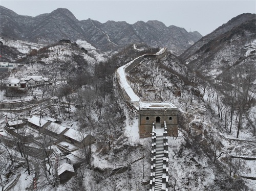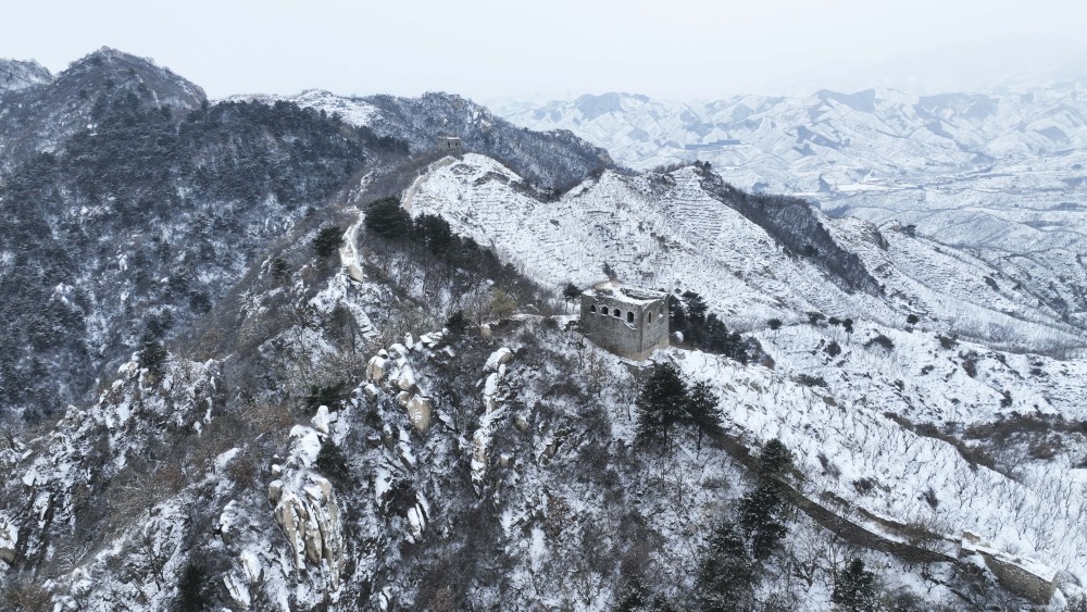 12月14日在河北省遵化市拍摄的古长城雪景(无人机照片)。新华社发(刘满仓摄)