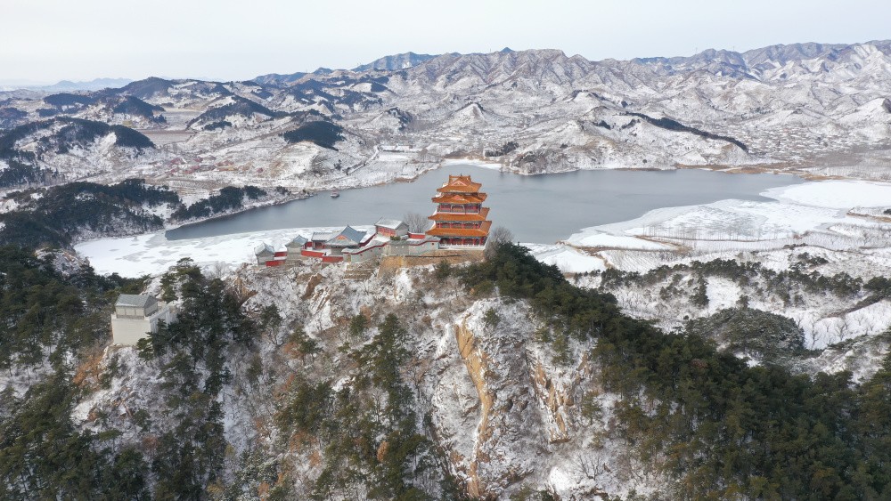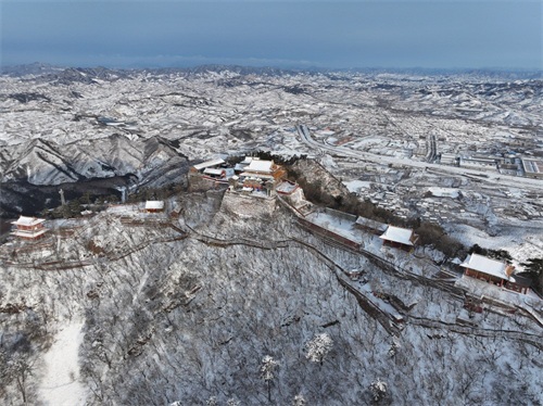 12月15日拍摄的河北省唐山市迁西县景忠山雪景(无人机照片)。新华社发(王爱军摄)