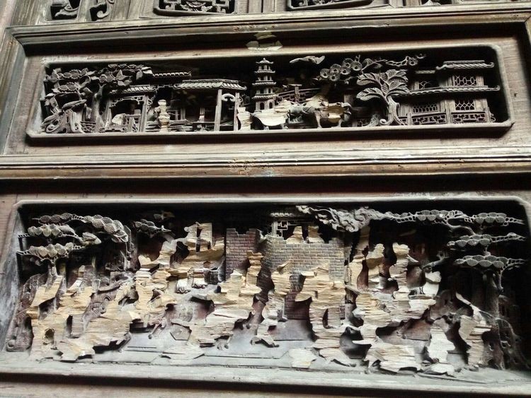 木雕楼中的木雕精美繁复,但是里面的人脸都被铲去,文革时期破四旧铲去木雕人脸,寓意为洗心革面。历史不仅给我们留下了这精美的瑰宝,也留下了伤痕,让我们懂得珍惜。