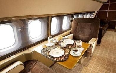英国知名的八卦媒体《太阳报》日前曝光了这架备受瞩目的波音727客机。这架可以乘载29人的客机内舱,座椅使用的是红丝绒和米色沙发,显得异常奢华。机上有一间相当宽敞的圆形起居室和大厨房,而在主卧房内,有一张大床、一个休息区和一套私人卫浴,可以让长途旅行非常舒适。