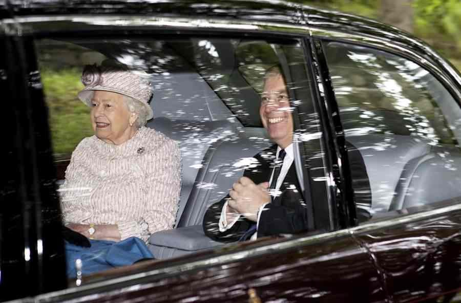英国女王伊丽莎白二世11日与安德鲁王子一同乘车前往教堂做礼拜