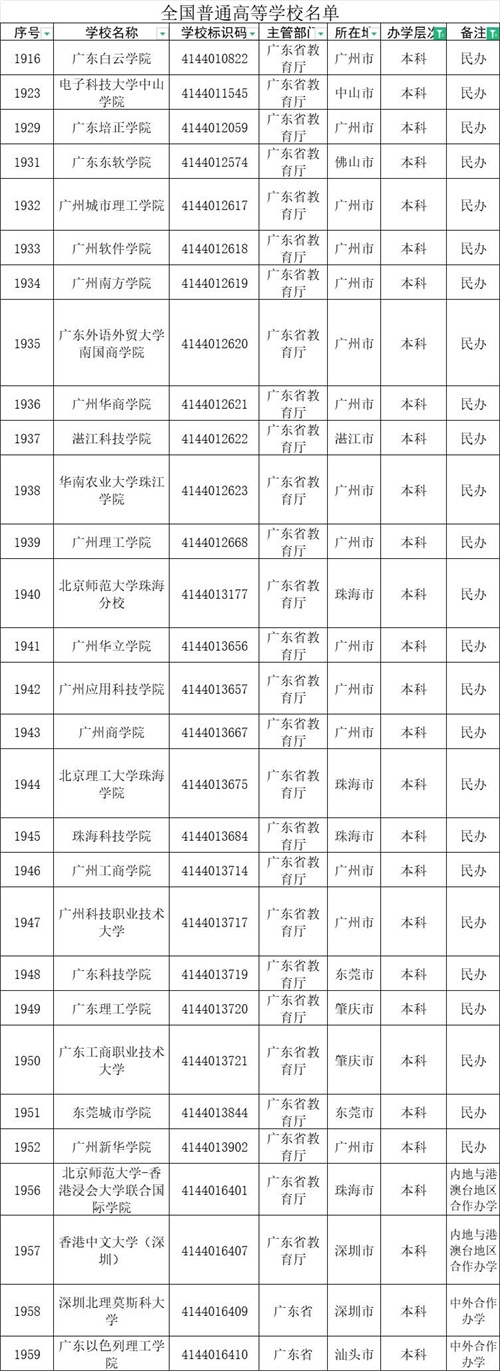 按照国家教育部网站信息,全国高等学校共计3013所,之前已经介绍了华北,东北,华东,华中各省市的高校都有哪些。那么属于华南区域的广东省一共有多少所大学呢,这个数字是174所大学。从数量而言,这个高校数字在全国属于名列前茅,超过了100所,都快200所了,当然比起教育大省的江苏省还要略少一些的。但比起其他省份,广东的高校数量都是远超的。那么这些广东的高等学校又是怎么分类的呢?下面我们一一罗列。