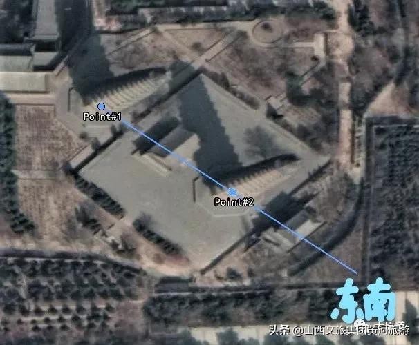 可以运用一下现代手段来作观测。在卫星地图上,如果将双塔做连线,其延长线直指东南方向的黄陵街道老峰村一带。