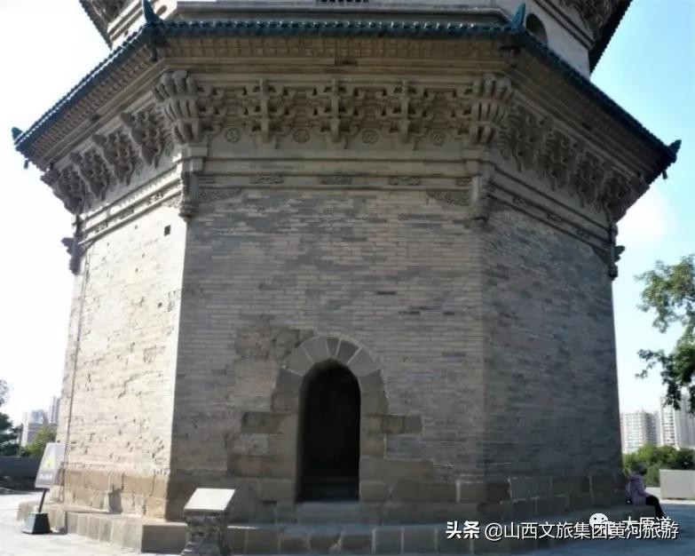 两座塔共有三个门:文峰塔有一个塔门,朝西北,西北为太原城方向;宣文塔有两个门,一个通往地宫的门,朝向西北,另一个通往塔顶的门,朝向东南;朝向东南的门上有塔名“宣文佛塔”,这个门显然是宣文塔的正门。