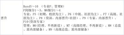专业岗位P,管理岗位M,运营岗位O,后面的数字越大,级别越高。Band 是统一的级别,类似于初级中级高级。