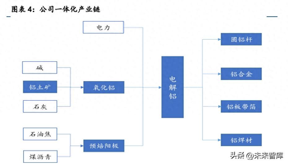 公司重视绿色铝材一体化,经过多年的发展,目前已形成了集铝土矿开采、 氧化铝生产、电解铝冶炼、铝加工及铝用炭素制品生产和销售为一体的较为完 整的铝产业链,形成年产氧化铝 140 万吨、绿色铝 305 万吨、阳极炭素 80 万 吨、铝合金 140 万吨、铝板带 13.5 万吨、铝箔 3.6 万吨的产业规模,主要产品 有氧化铝、铝用阳极炭素、重熔用铝锭、圆铝杆、铝合金、铝板带箔、铝焊材 等。