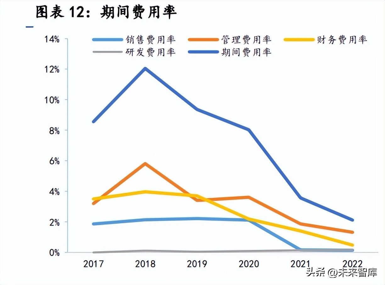 四费支出得到控制,财务费用持续降低。2022 年公司四费总额 10.27 亿元, 占营业收入比重 2.12%,较上年减少 1.45 个百分点,处于行业领先水平,这主 要是由于目前公司带息负债规模减少及利率降低所致。2018 年,因公司对主要 设备进行了集中停产检修及有息债务本金增加等原因,导致期间费用大幅增加。 2018 年以后,公司在充分发挥资源协同效应的同时进一步加强内部管理,使得 销售费用率、管理费用率、财务费用率均有所降低。