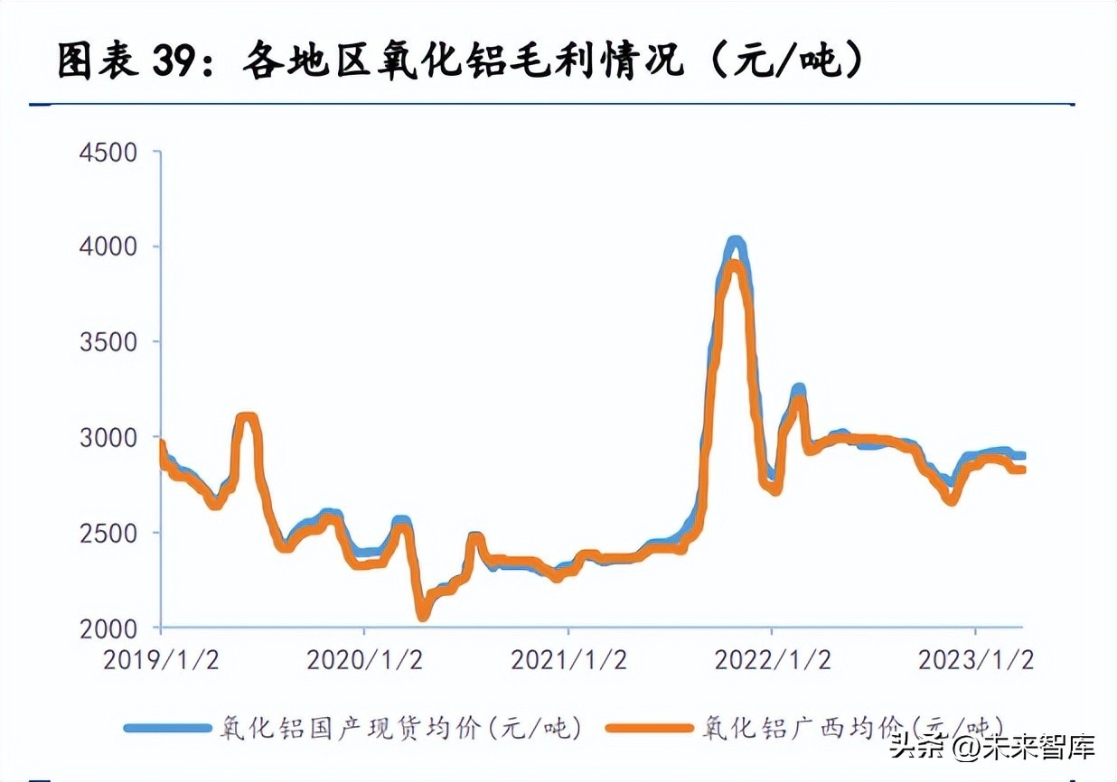 综上,由于氧化铝和阳极炭素的自给率大幅提高,低电力成本优势继续保 持,公司的电解铝成本在整个行业中处于领先位置,根据百川盈孚统计,2022 年电解铝行业全年平均加权成本约为 17500 元/吨,公司铝锭平均成本仅为 15400 元/吨,具备约 2100 元/吨的成本优势。