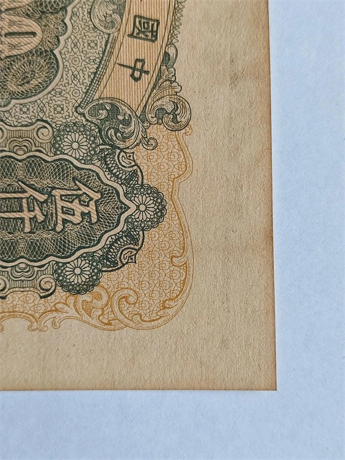 8、真币颜色色泽和纸张随着时间的流逝,经过七十五年岁月风雨季节的侵蚀一起变化,自然而然的变化形成的纸张、颜色温润柔和 ,点、线段色泽放大倍数清晰而真。字体大小干净利落真币雕刻版颜色截图放大雕刻印刷文字、底纹清晰流暢,颜色真实温润柔和,不模糊。