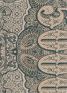 6、雕刻版套印套印制 。 真币是多种雕刻版组合成一次一次套印套色印制而成。每一个雕刻版印刷颜色都是单一的,雕刻版的点 线段 线条粗细、疏密处理恰当,能很好地表现出图案的层次,印刷十分清晰、精美。