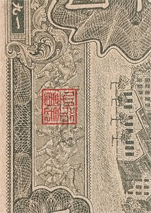还有画师选出画好的画,官印章,雕刻师把毛笔书法好的文字字体,和画好的图面、官印章都单独拓印到各个雕刻物件上,是老一代雕刻师用精湛手艺灵活的手,精雕细琢的雕刻,雕刻出活灵活现书法文字和精致美景,还有精美立体感的印章,都雕刻在各个印版上。印刷出的文字活灵活现,点 线段线条组合成精美画面。观看朴实无华,实实在在,纸上跃然呈现出立体感。(解说叙述:第一代人民币纸张很难仿制,都是以前手工作坊制作特殊的纸张; 雕刻印版,造假难。解放前后印制第一版人民币,设计师,印刷师都经过细心细致每个环节操作,每一枚纸币都是人工雕刻师傅操作制版印制,又费工又费时,要是技术不过关,雕刻印版成废品,所以很难仿造)