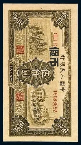 第一版人民币的假币出现的时间和伪造的目的区分,分两种类型:第一种类型是在第一套人民币流通期间出现的假钞, 新中国刚建国时期由于国民党安插在解放区的特务制造假钞 造假钞为扰乱新中国金融造成混乱,破坏新中国政权为目的,当流通货币使用。第二种类型是在第一版人民币进入收藏领域后出现的假币,把假币当收藏品来销售,目的是侵害收藏者的利益,从中取得暴利。