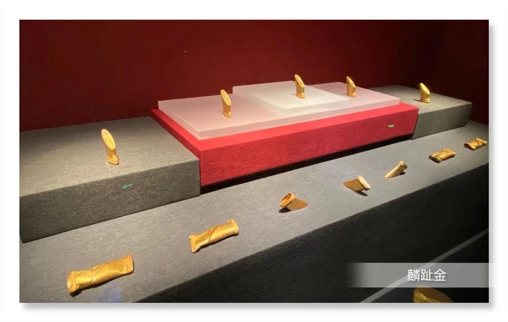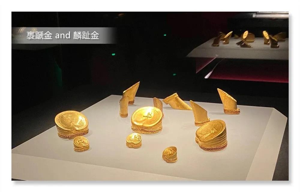 马蹄金和麟趾金,主要是仿天马之足和麒麟之足所铸造,并且带“上”“中”“下”字样~马蹄金在发现的时候,里面是空的,装着比黄金还贵的琉璃~