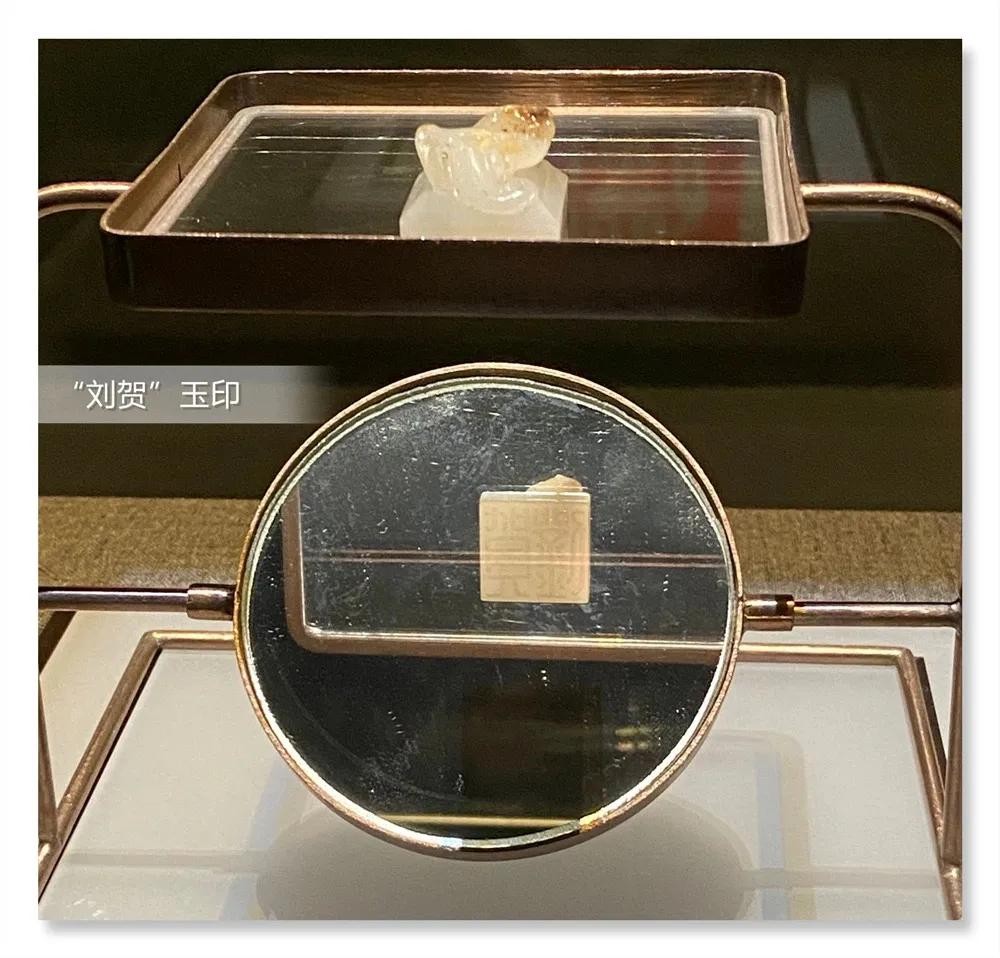 然后就开始展示各种文物,都有说明,证明刘贺身份的刘贺玉印,私印,实物非常的小巧,海昏侯墓比较出名的印还有“大刘记印”和“刘充国印”,刘充国是刘贺的儿子,也葬于此地~