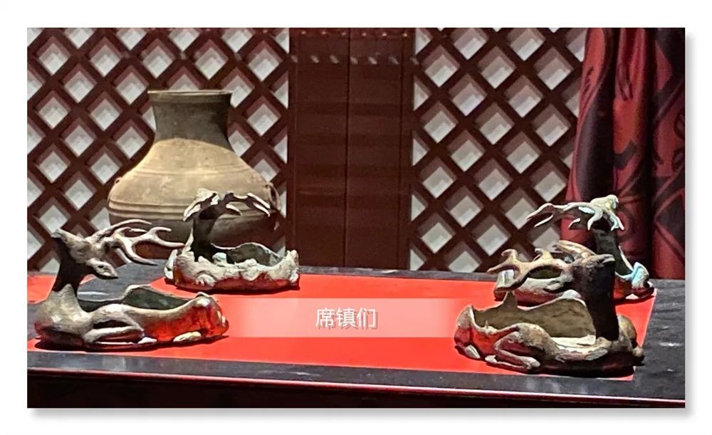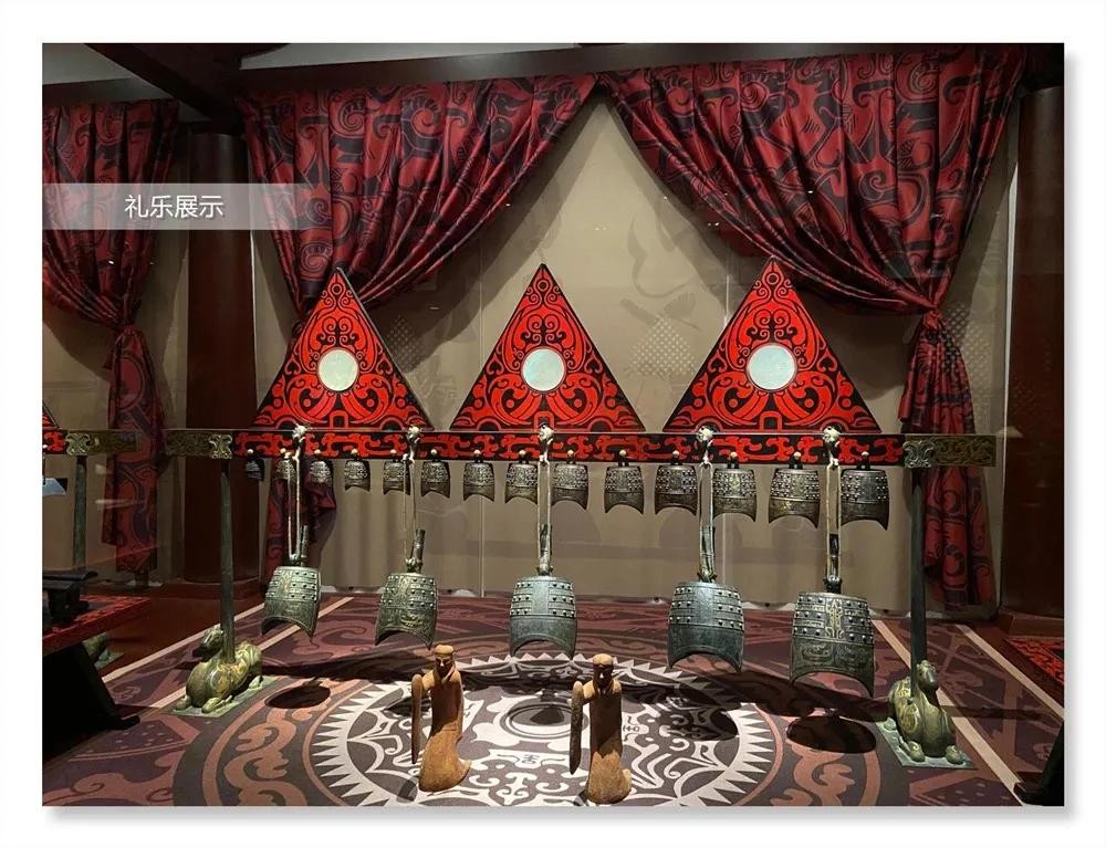 然后旁边是一些还原的房内布景,配色不错,礼乐编钟,说明海昏侯还是个文艺青年呀~