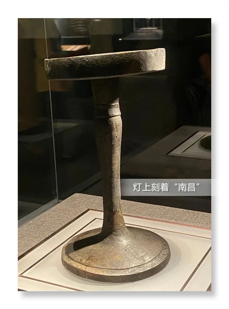 第一件文物是一盏青铜豆灯,这盏灯记录了最早的“南昌”来历,刻在灯的底座~