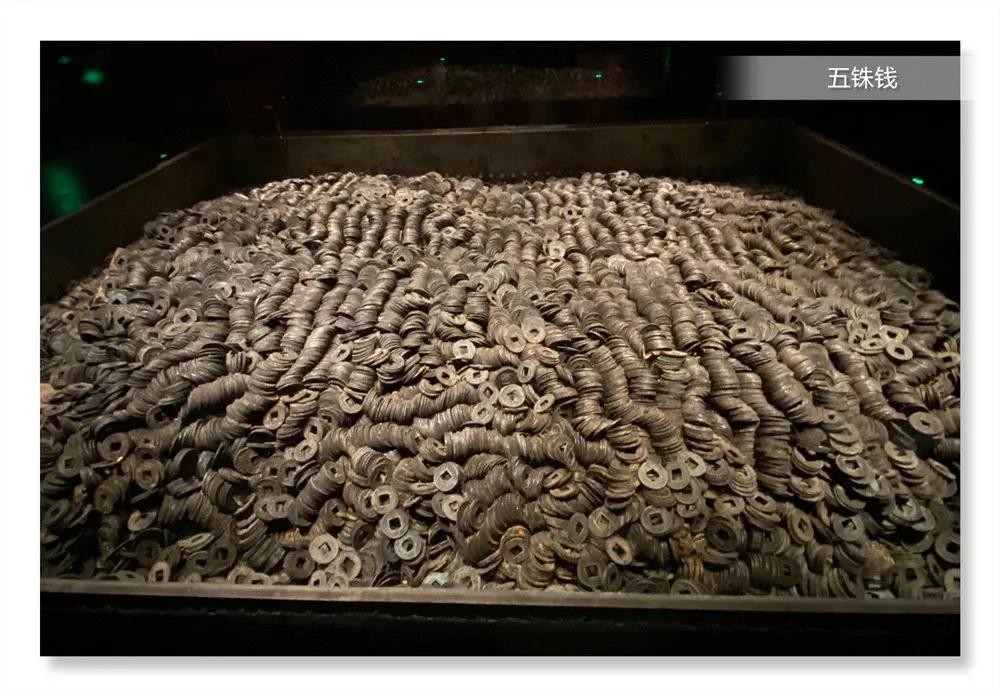 看完明晃晃的金子,来看看以吨计算的五铢钱,注意看墙壁里都是一串串的钱~