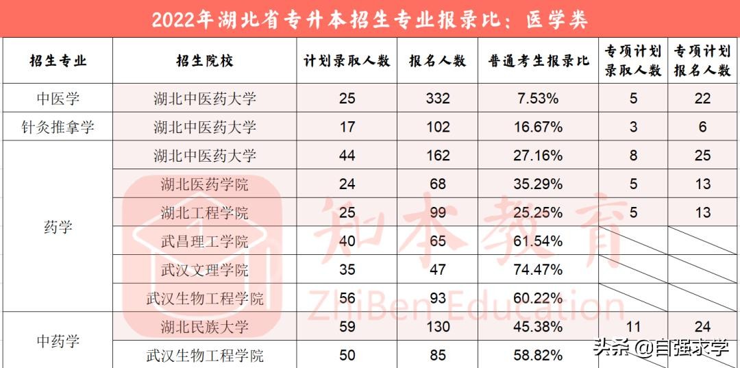 以下是2022年湖北省专升本医学类专业考情: